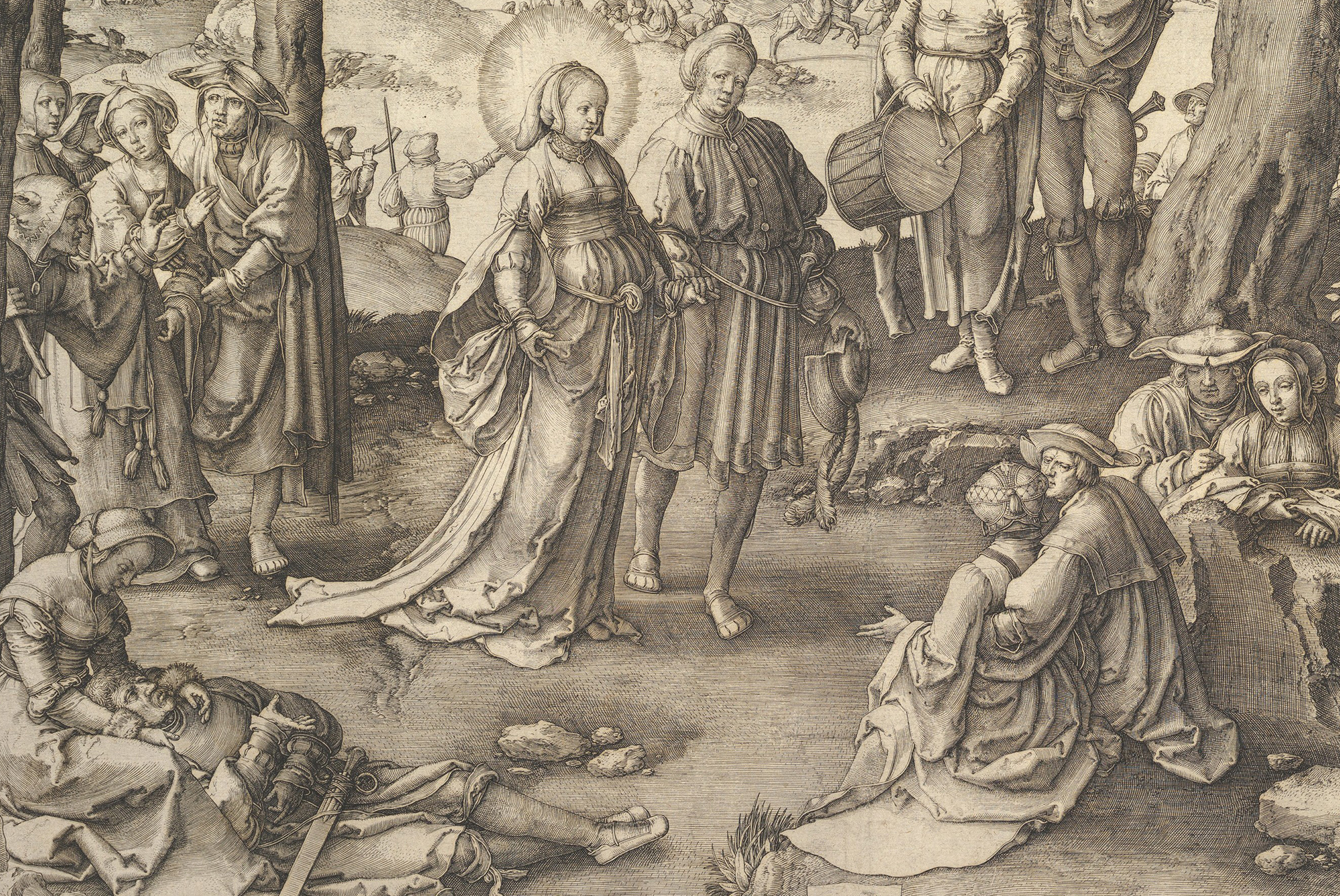Das Sujet “Magdalenentanz” war zu Breughels Zeiten noch relativ neu und geht auf einen gleichnamigen Stich von Lucas van Leyden zurück (siehe unten), der im Jahr 1519 entstand. Die Legende, Magdalena sei eine Kurtisane gewesen, wurde im 16. Jahrhundert populär. Van Leyden schmückte es als einer der Ersten zu einem Sujetbild aus, in dem sich das Kurtisanenleben im Landsknechtmilieu seiner Zeit wiederspiegelt. Andere Maler wie Breughel griffen das Thema dann ebenfalls auf. Mit dem Vorwand eines bliblisches Motivs konnten sie ein Gesellschaftsportrait ihrer Zeit zu einem Thema schaffen, das sonst kaum Darstellung in der Kunst gefunden hätte.