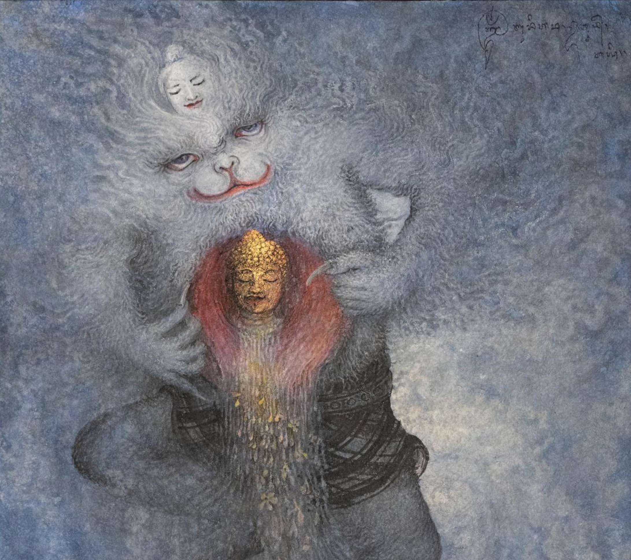Extraordinary, the way she restores balance, she holds life itself. That is within us. Mother is beautiful; we make her beautiful, very beautiful. But this is imagined as the power of the mother like this. This is what can happen in life. The mother gives birth, extraordinary. So she is the source of life. Yes. But everything goes back and forth. Life, death, life, death. Nothing is permanent in this world. Nothing. The body ages, ages, ages—then disappears. Who can stop it? It just happens. Yes, that is how life is. Meetings and partings. That’s why (….) —those are corrupt.