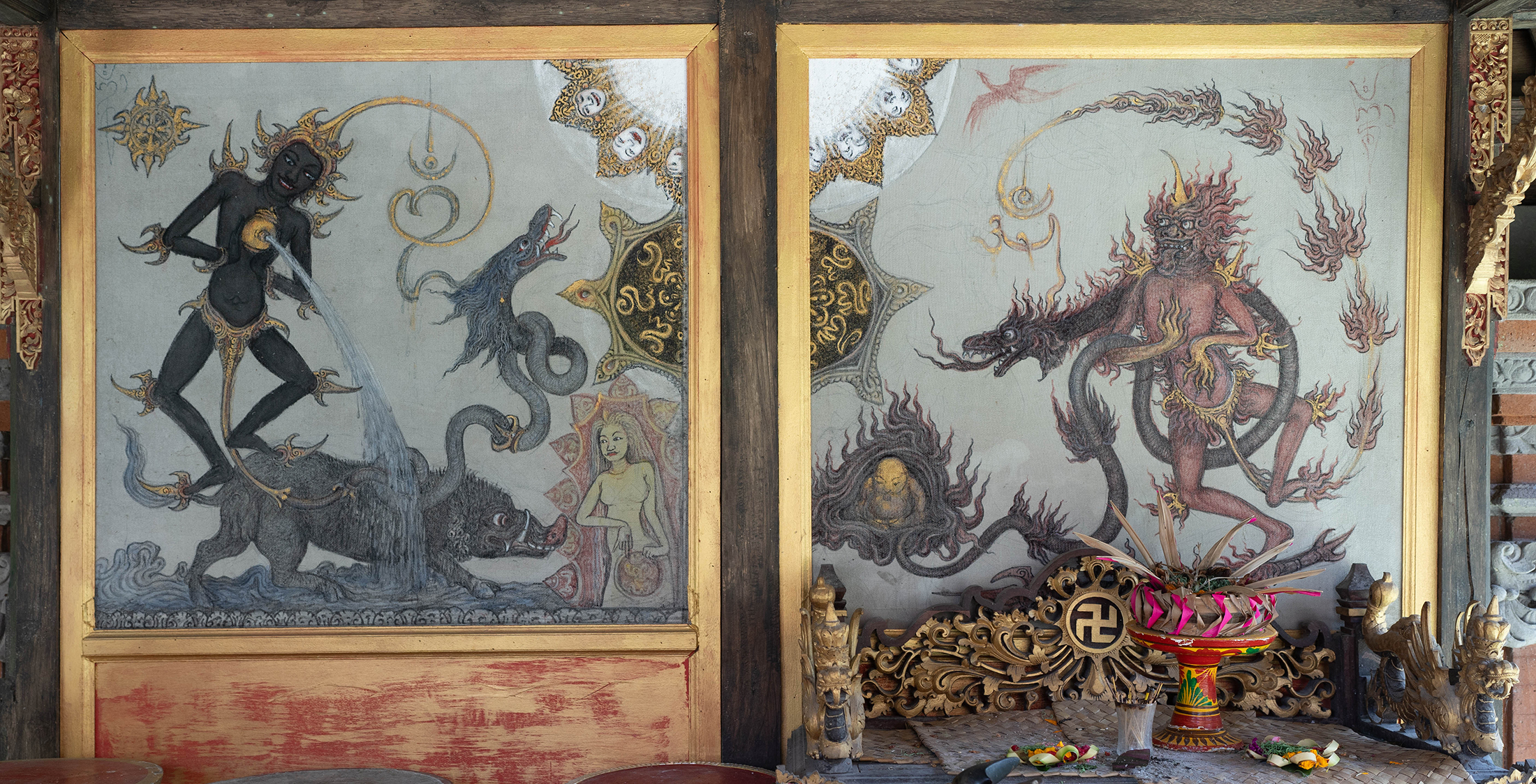 Budiana: It does not need to be destroyed. This creation cannot and must not be destroyed. It is a teaching: the good will rise, the bad will fall. That means in the story, the bad will be defeated. So even the bad, in the end, meets its downfall. The point in Bali is balance. Yes, balance. As I mentioned, nowadays many people tell the story of ‘Calonarang’ There is the figure of Barong and Rangda. And this represents balance. If Barong dominates too much, it is unbalanced. If Rangda dominates too much, it is unbalanced. But in the temple, they are united.